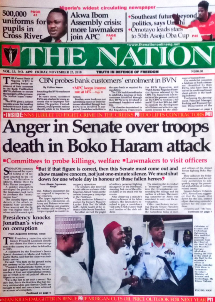 Anger in Senate Over troops death in Boko Haram attack
