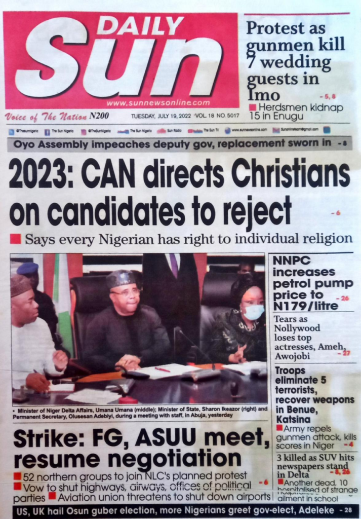 2023: Can Directs Christans on Candidates to reject