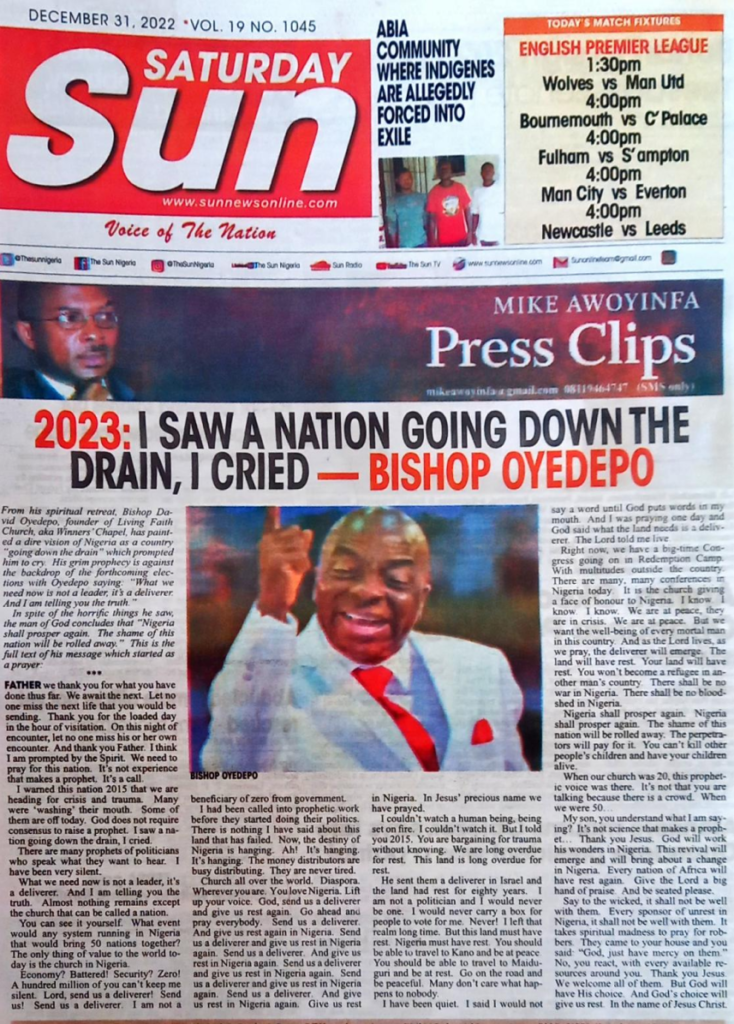 2023: Isaw a Nation Going Down The Drain, I Cried-Bishop Oyedepo