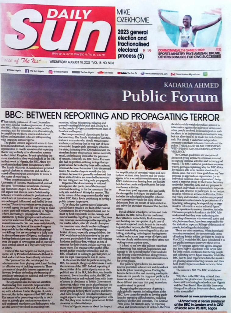 BBC: Between Reporting and Propagating Terror