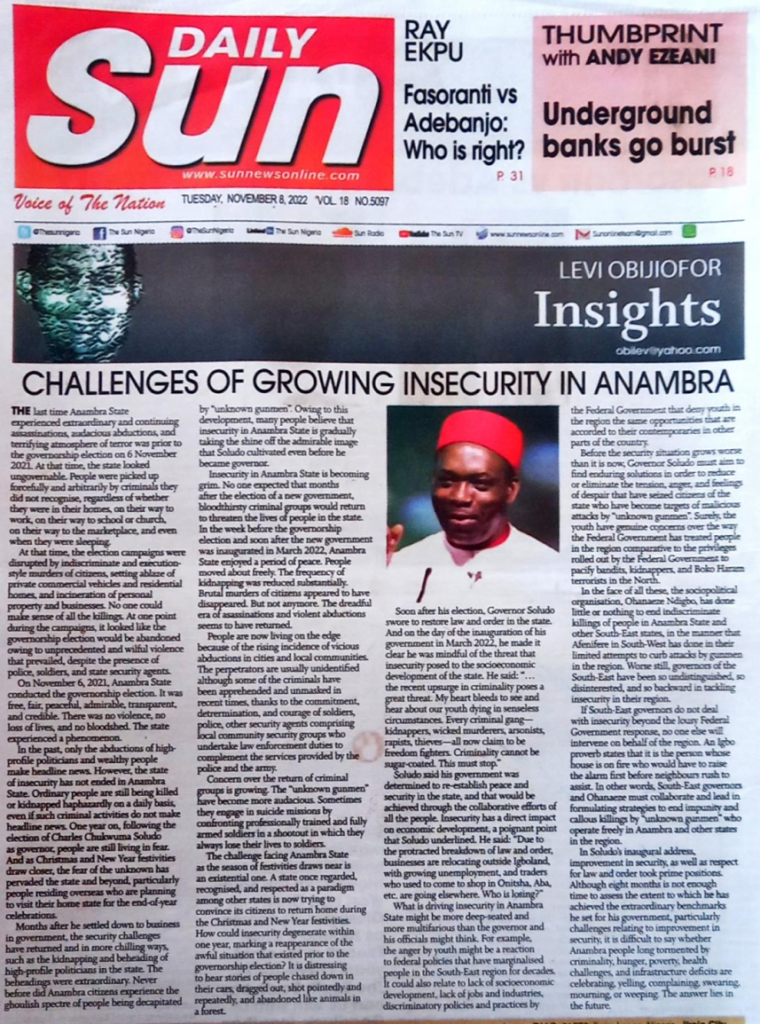 Challanges Of Growing Insecurity in Anambra