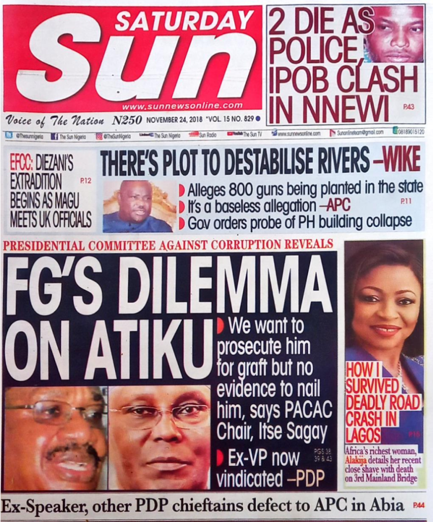 Fg’s Dilemma On Atiku