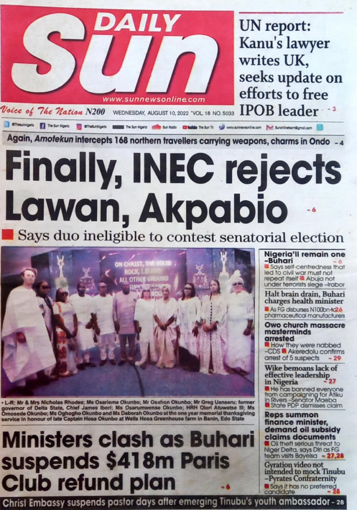 Finally, INEC rejects Lawan,Akpabio