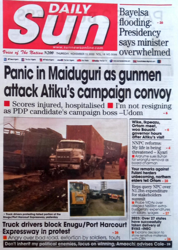 Panic in Maiduguri asa gunmen attack Atiku’s campaign convoy