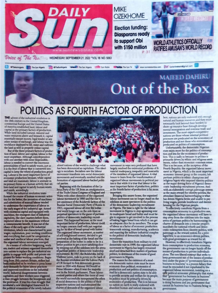 Politics As Fourth Factor Of Production