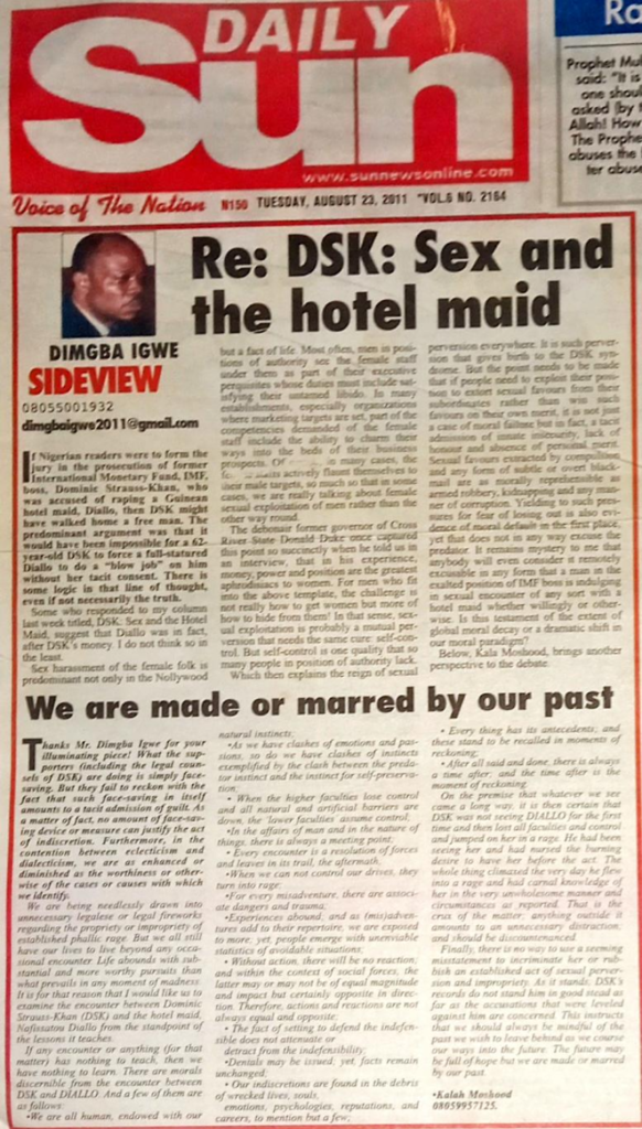 Re: Dsk: Sex and the hotel maid