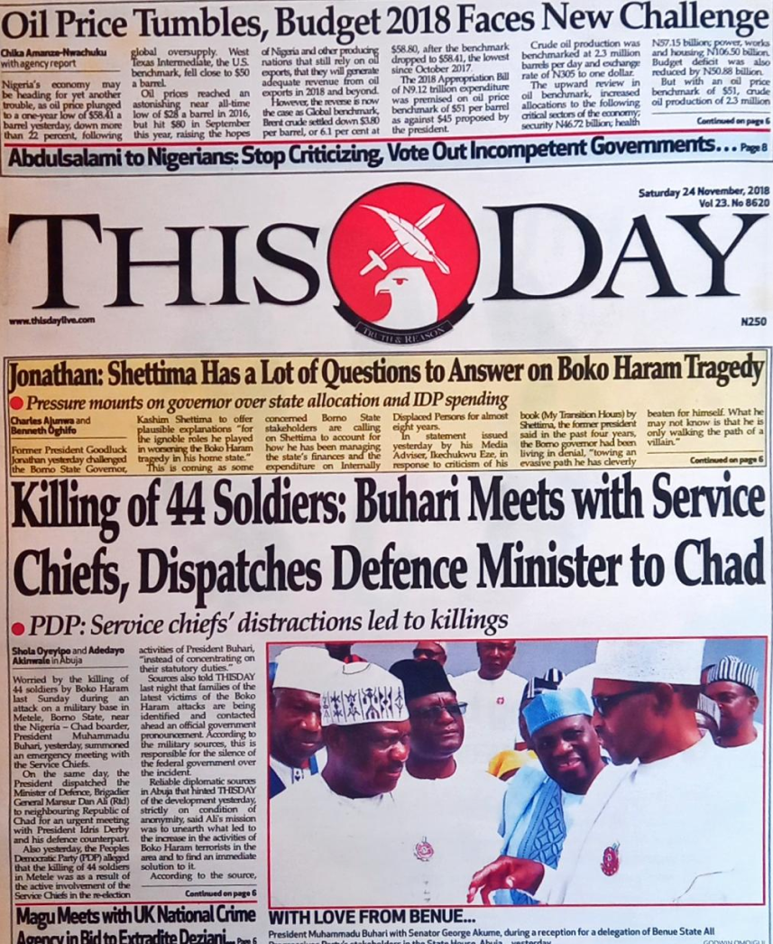Killing of 44 Soliders: Buhari Meets With Service Chiefs,Dispatches Defence Minister to Chad