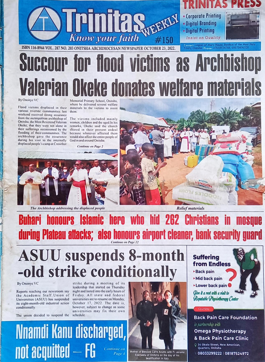 Succour For flood Victims as Archbishop Valeria Okeke Donates Welfare materials